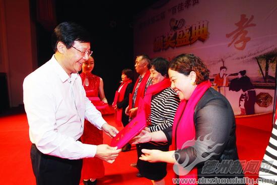 市委常委、宣传部长、德州经济技术开发区党工委书记单传海为孝贤代表颁奖。
